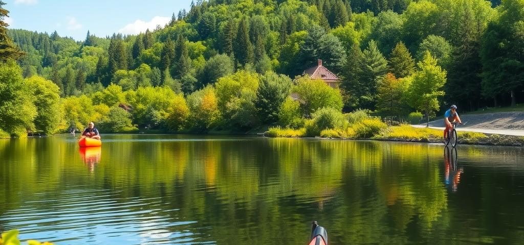 - Weekendowy pobyt: połącz wodne atrakcje z aktywnością „na lądzie”: piesze przejście po wybranych odcinkach oraz wycieczkę rowerową po trasach w okolicy. Jeśli zależy na zmianie tempa, zaplanuj na jeden dzień dłuższy spacer, a na drugi krótsze odcinki i odpoczynek.